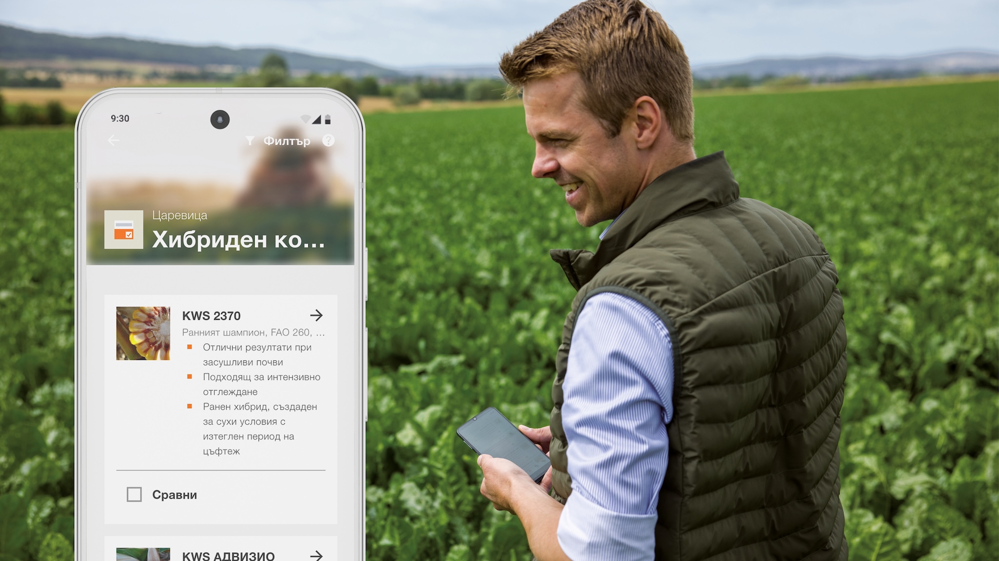 Намерете и изберете правилния хибрид с Хибридният консултант в приложението myKWS – съобразен с вашето местоположение и изисквания на фермата.