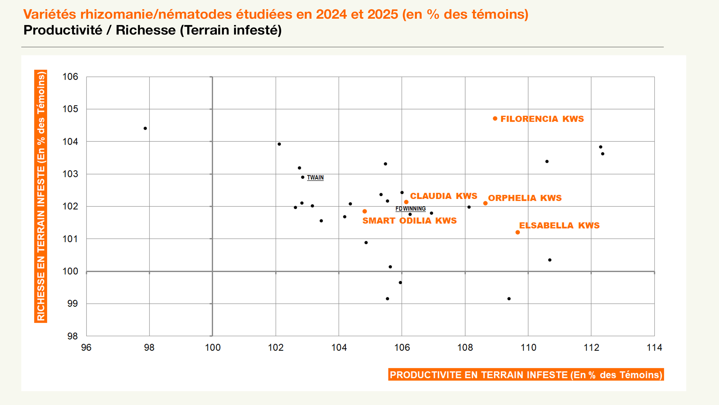 - SMART ODILIA KWS, variété NEMATODES, très tolérante à la cercosporiose (technologie CERCO+).