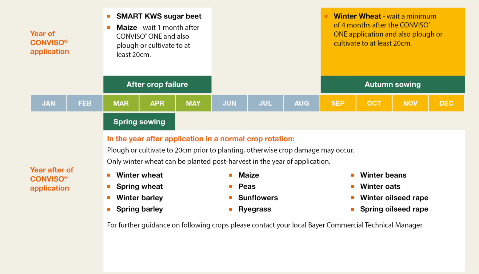 Following crops that are not recommended might be sensitive to ALS-herbicides like CONVISO® ONE. Three main factors can influence the impact on following crops: