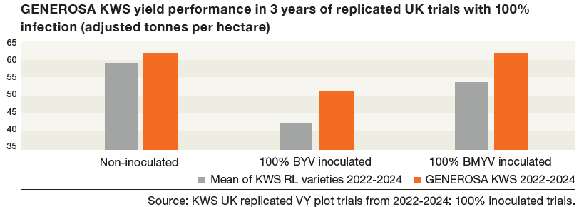New this year, GENEROSA KWS joins MARUSCHA KWS as our second virus-tolerant variety. With improved yields and strong Rust tolerance, it offers a powerful tool against virus yellows.