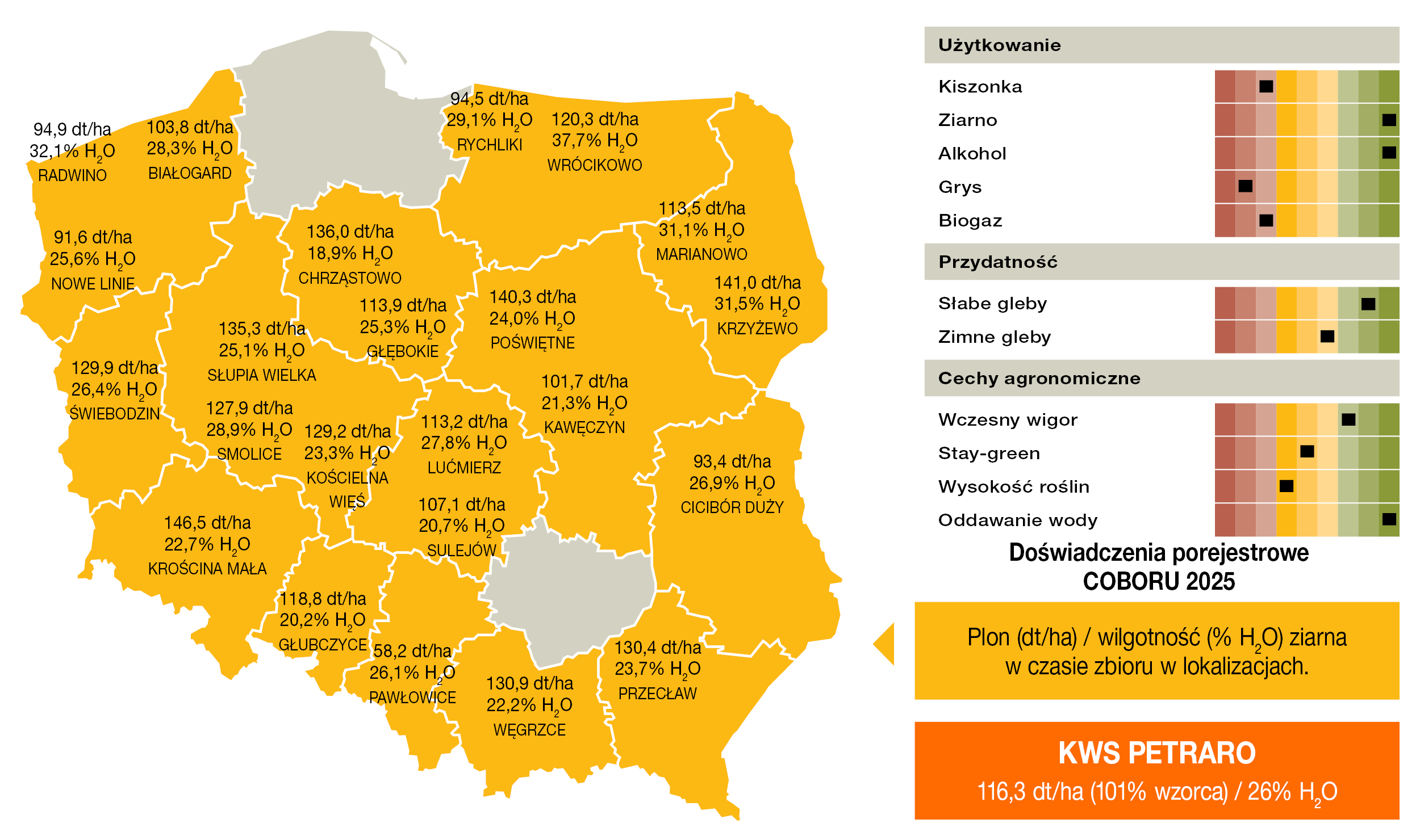 - W doświadczeniach rejestrowych potwierdzona wysoka zdrowotność (tolerancja na Fusarium).