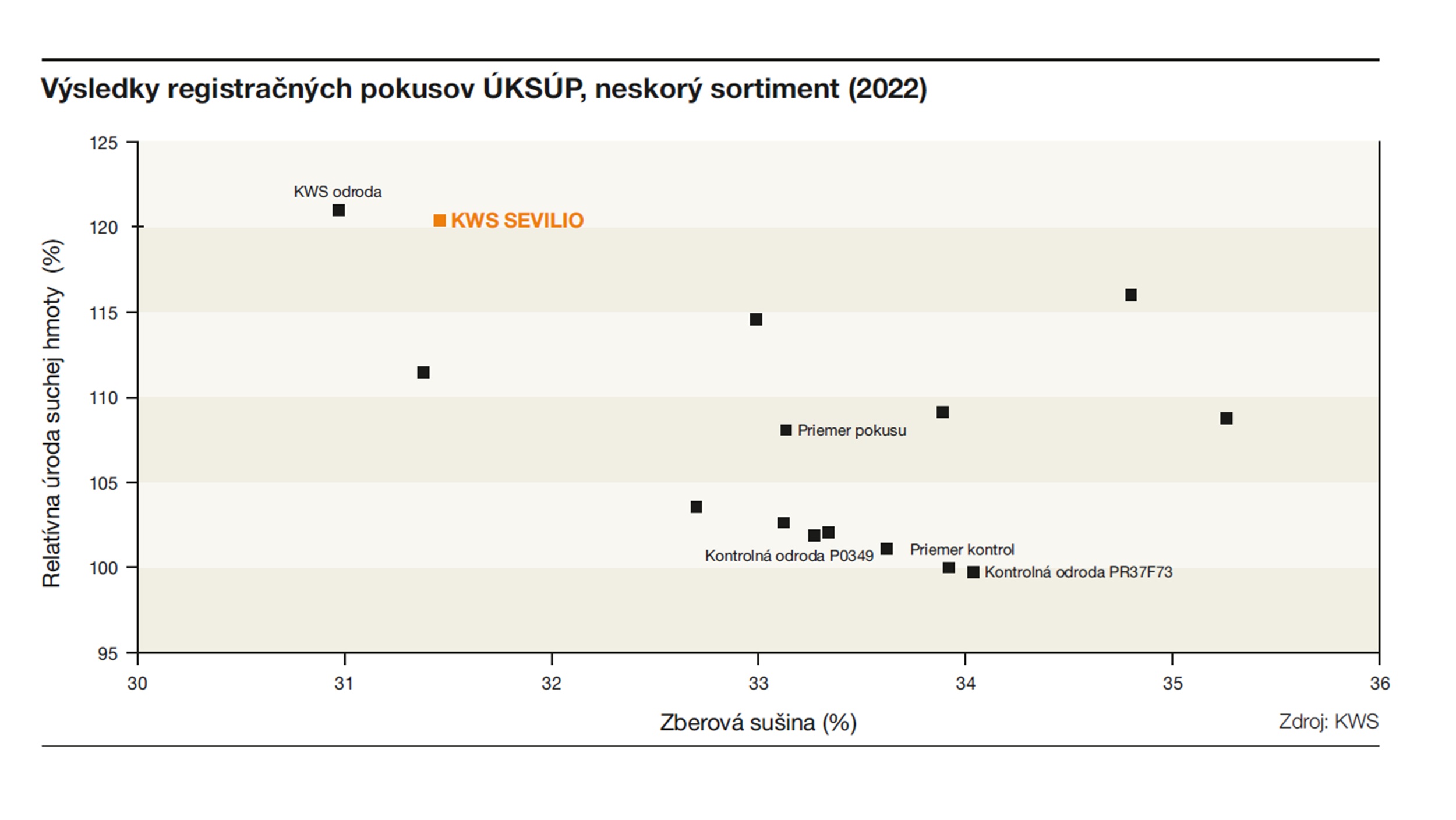 - KWS SEVILIO tvorí ideálneho silážneho partnera medzi hybridy TOSKANO a KWS LUKAS, keďže majú podobné krivky dozrievania, čo výrazne uľahčuje nadväznosť pri zbere siláže s ohľadom na dosiahnutie ideálnej zberovej sušiny.